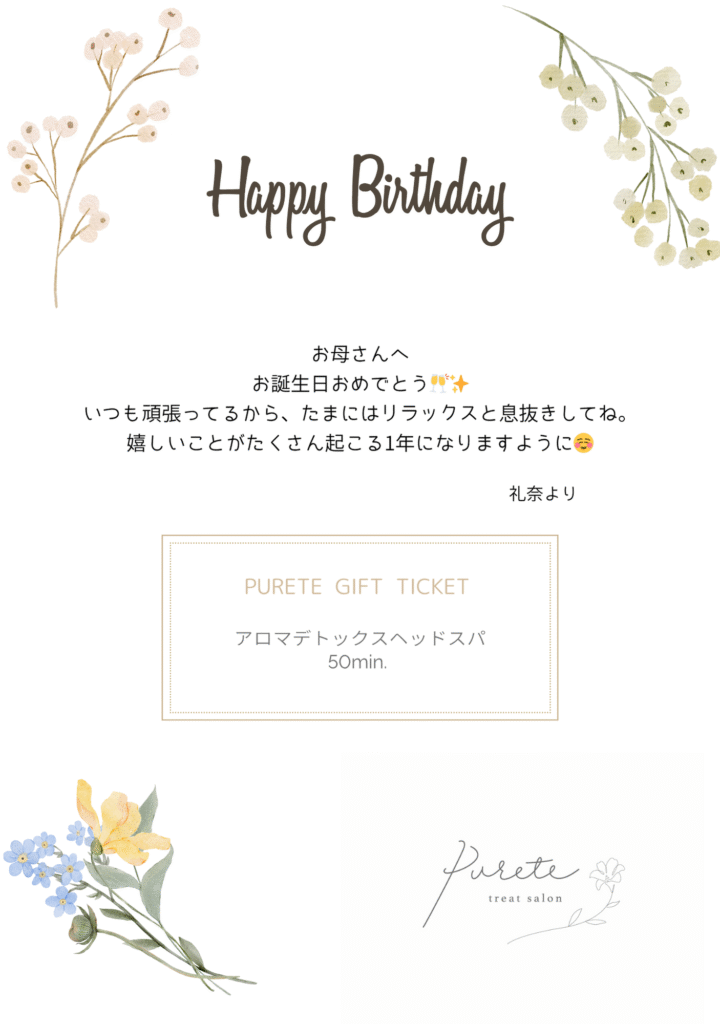 鈴木 礼奈さまよりヘッドスパのギフトカードが届いております