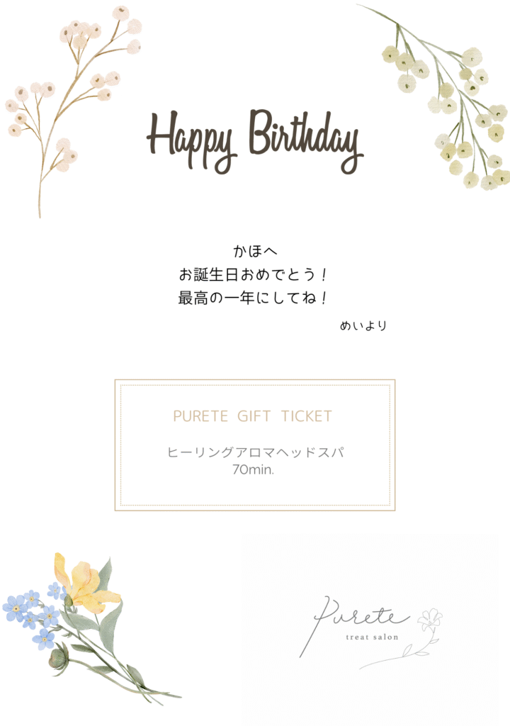 磯部 芽以さまよりヘッドスパのギフトカードが届いております